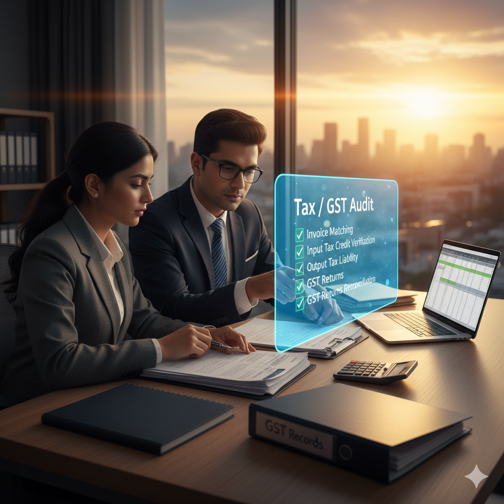 Independent verification of GST returns & records, ensuring correct eligibility of input credit, compliance with indirect tax laws.